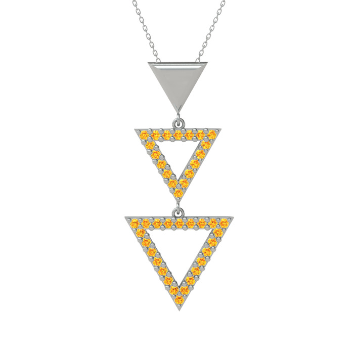 Sitrin 18 ayar beyaz altın kolye (40 cm gümüş rolo zincir)
