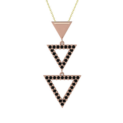 Siyah zirkon 18 ayar rose altın kolye (40 cm gümüş rolo zincir)