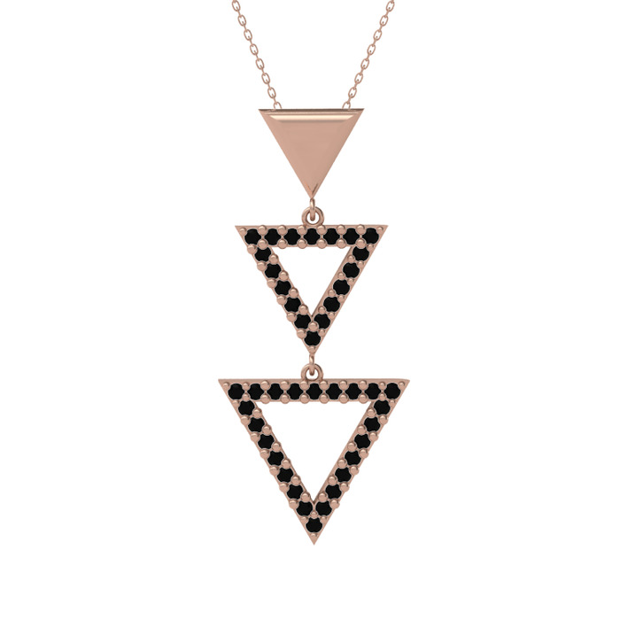 Siyah zirkon 8 ayar rose altın kolye (40 cm rose altın rolo zincir)