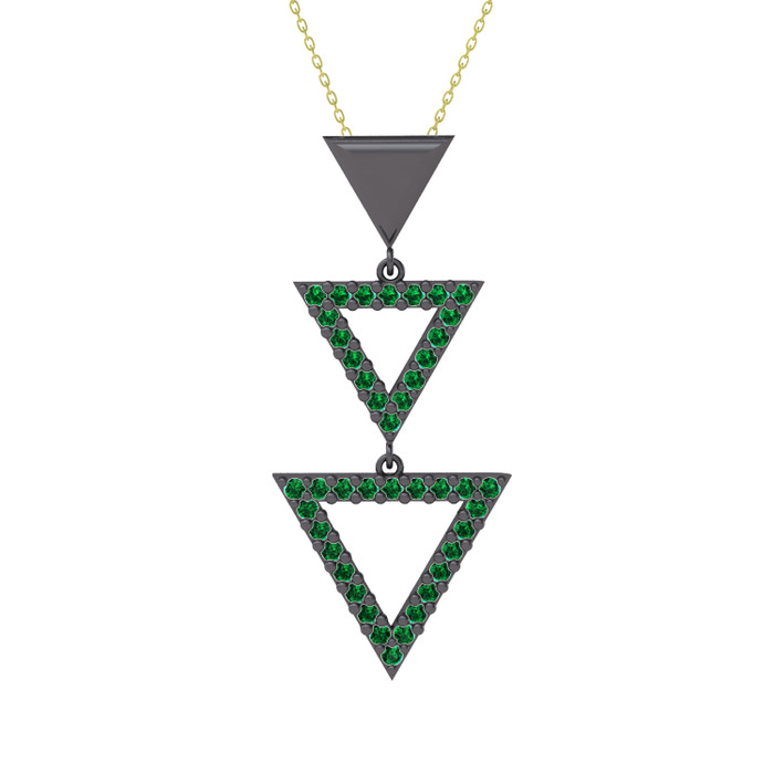 Yeşil kuvars 925 ayar siyah rodyum kaplama gümüş kolye (40 cm altın rolo zincir)