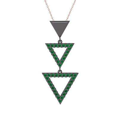 Yeşil kuvars 925 ayar siyah rodyum kaplama gümüş kolye (40 cm rose altın rolo zincir)