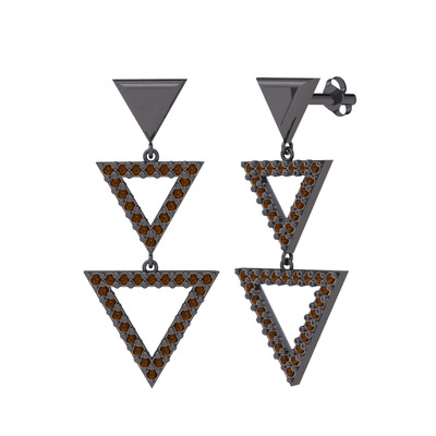 Dumanlı kuvars 925 ayar siyah rodyum kaplama gümüş küpe