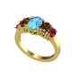 Akuamarin, dumanlı kuvars ve rodolit garnet 18 ayar altın yüzük