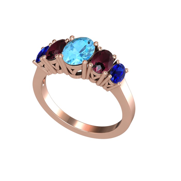 Akuamarin, kök yakut ve lab safir 18 ayar rose altın yüzük