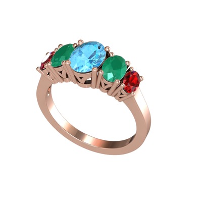 Akuamarin, kök zümrüt ve garnet 18 ayar rose altın yüzük