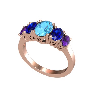 Akuamarin, lab safir ve ametist 925 ayar rose altın kaplama gümüş yüzük