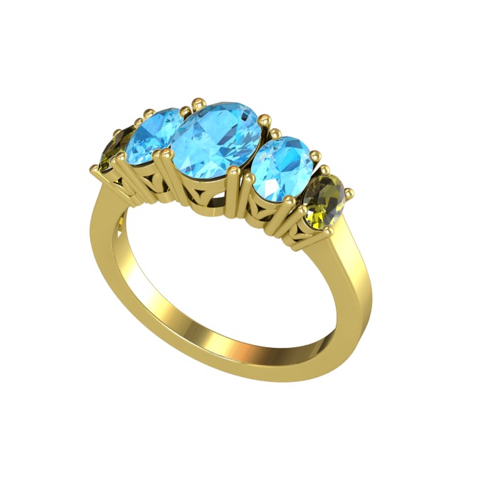 Akuamarin ve peridot 925 ayar altın kaplama gümüş yüzük