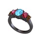 Akuamarin, rodolit garnet ve dumanlı kuvars 925 ayar siyah rodyum kaplama gümüş yüzük