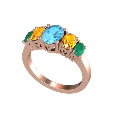Akuamarin, sitrin ve kök zümrüt 8 ayar rose altın yüzük
