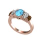Akuamarin, swarovski ve dumanlı kuvars 18 ayar rose altın yüzük