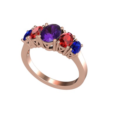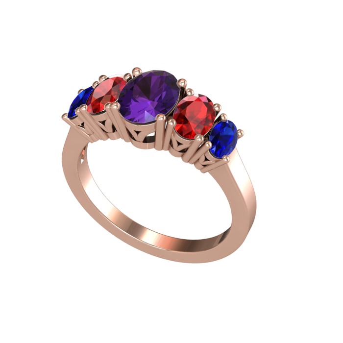 Ametist, garnet ve lab safir 8 ayar rose altın yüzük