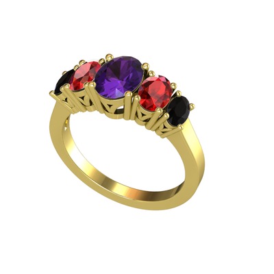 Ametist, garnet ve siyah zirkon 14 ayar altın yüzük