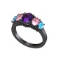Ametist, pembe kuvars ve akuamarin 925 ayar siyah rodyum kaplama gümüş yüzük