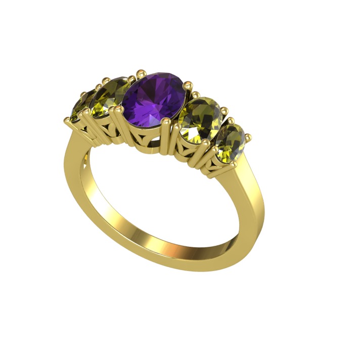 Ametist ve peridot 18 ayar altın yüzük