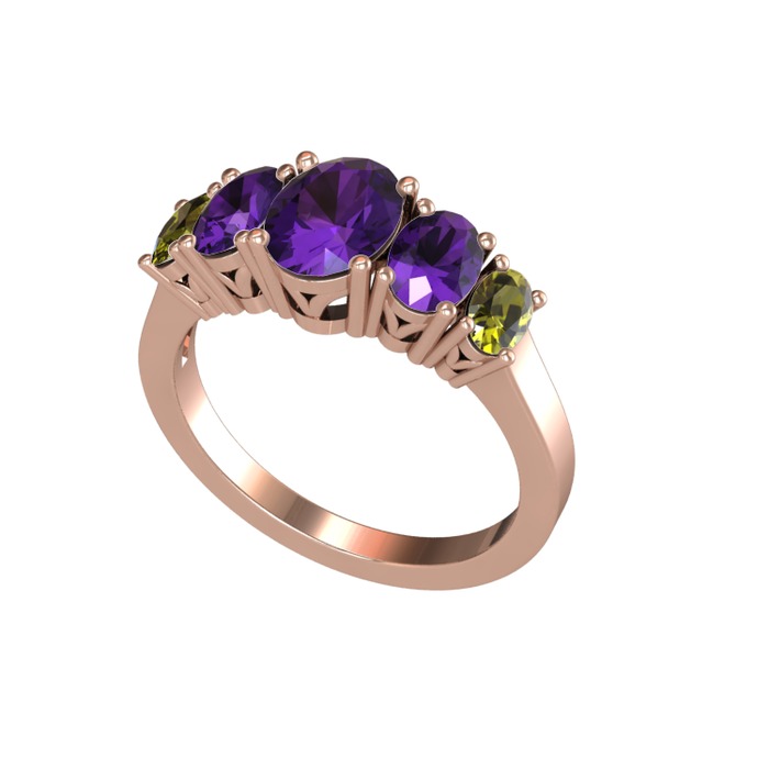 Ametist ve peridot 18 ayar rose altın yüzük