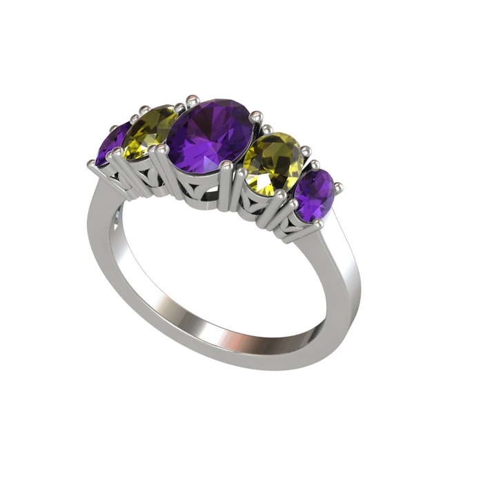 Ametist ve peridot 8 ayar beyaz altın yüzük