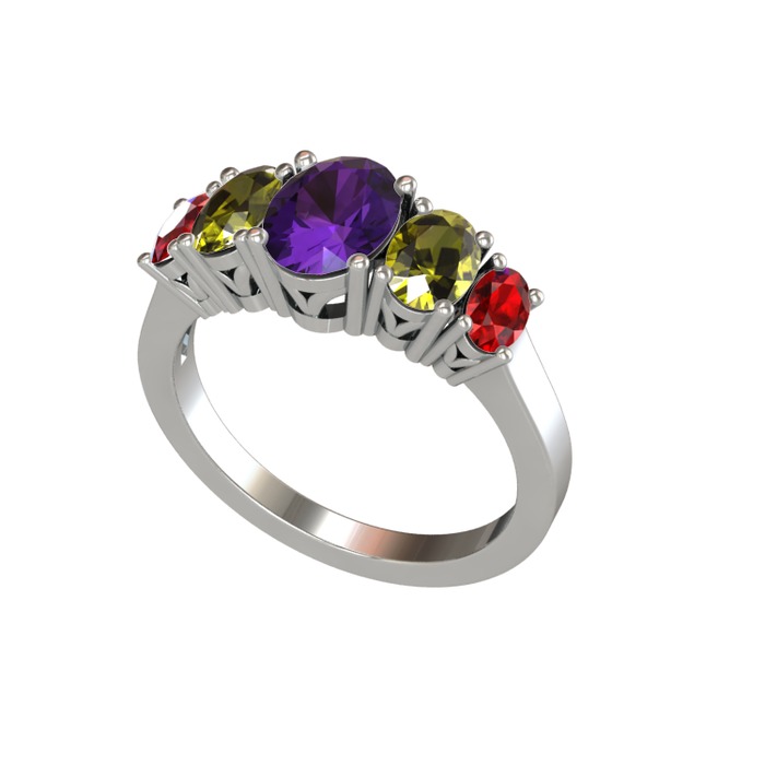 Ametist, peridot ve garnet 8 ayar beyaz altın yüzük