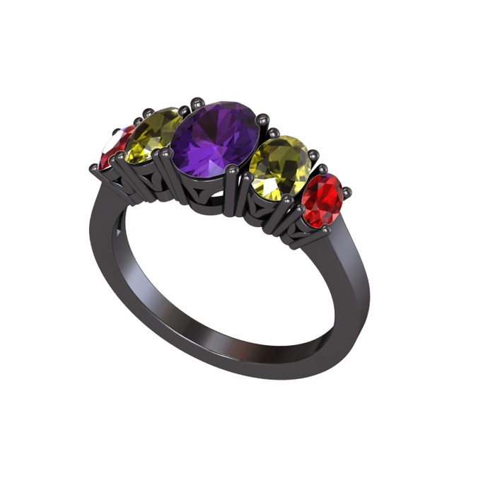 Ametist, peridot ve garnet 925 ayar siyah rodyum kaplama gümüş yüzük