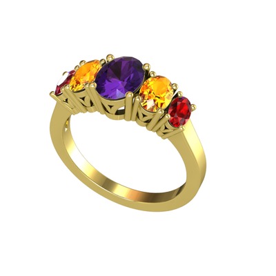 Ametist, sitrin ve garnet 18 ayar altın yüzük