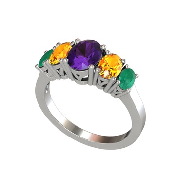 Ametist, sitrin ve kök zümrüt 14 ayar beyaz altın yüzük