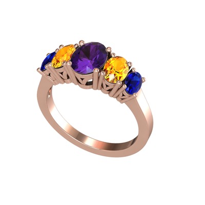 Ametist, sitrin ve lab safir 925 ayar rose altın kaplama gümüş yüzük