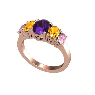 Ametist, sitrin ve pembe kuvars 18 ayar rose altın yüzük