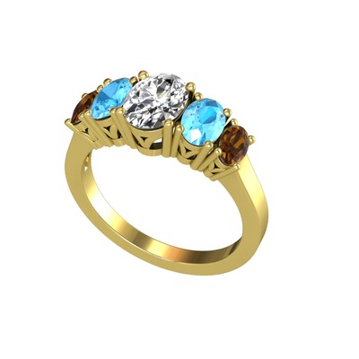 Beyaz zirkon, akuamarin ve dumanlı kuvars 18 ayar altın yüzük