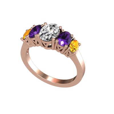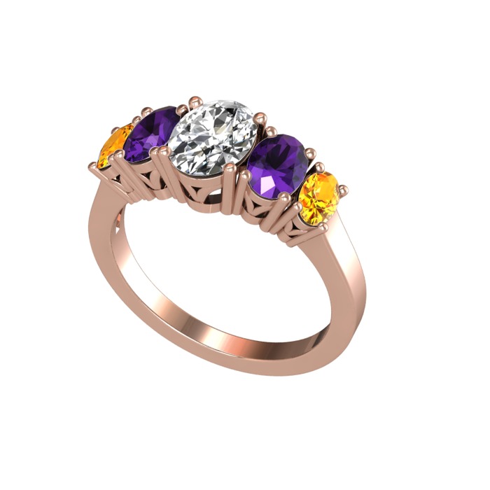 Beyaz zirkon, ametist ve sitrin 8 ayar rose altın yüzük