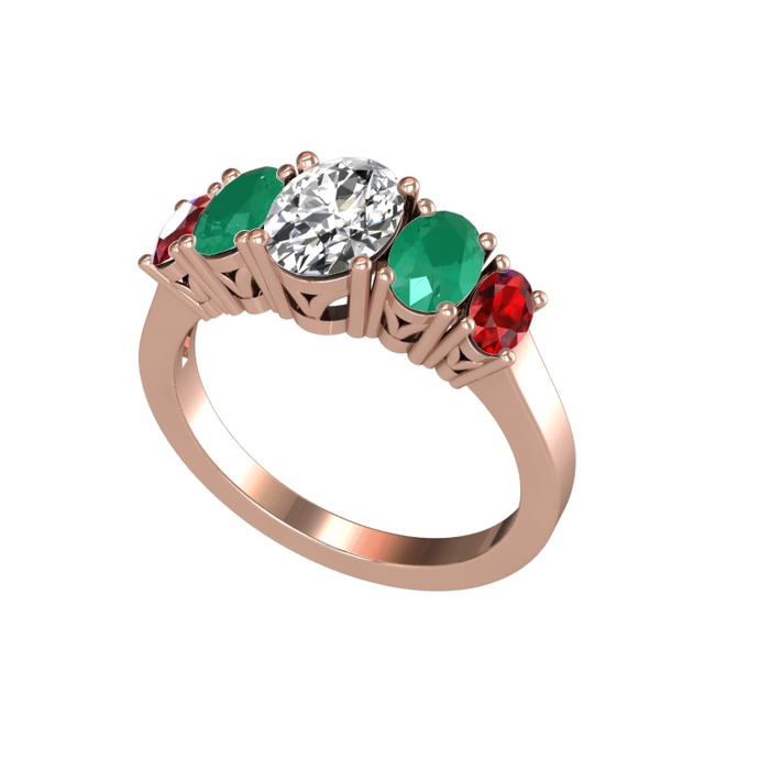 Beyaz zirkon, kök zümrüt ve garnet 8 ayar rose altın yüzük