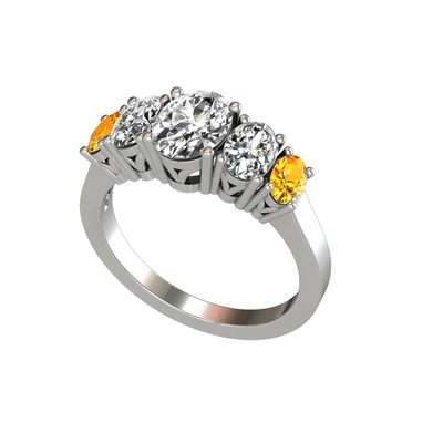 Beyaz zirkon ve sitrin 8 ayar beyaz altın yüzük