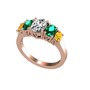 Beyaz zirkon, yeşil kuvars ve sitrin 14 ayar rose altın yüzük