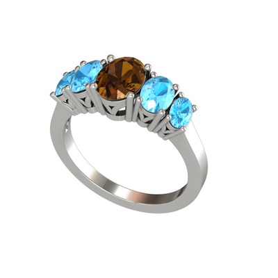 Dumanlı kuvars ve akuamarin 14 ayar beyaz altın yüzük
