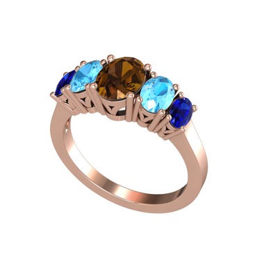 Dumanlı kuvars, akuamarin ve lab safir 18 ayar rose altın yüzük