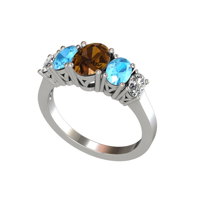 Dumanlı kuvars, akuamarin ve swarovski 925 ayar gümüş yüzük