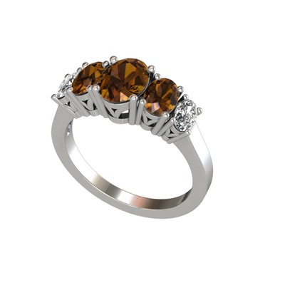 Dumanlı kuvars ve beyaz zirkon 8 ayar beyaz altın yüzük