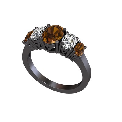 Dumanlı kuvars ve beyaz zirkon 925 ayar siyah rodyum kaplama gümüş yüzük