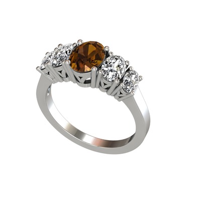 Dumanlı kuvars, beyaz zirkon ve swarovski 18 ayar beyaz altın yüzük