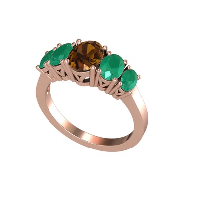 Dumanlı kuvars ve kök zümrüt 8 ayar rose altın yüzük