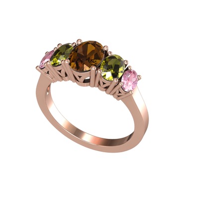 Dumanlı kuvars, peridot ve pembe kuvars 925 ayar rose altın kaplama gümüş yüzük