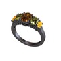 Dumanlı kuvars, peridot ve sitrin 925 ayar siyah rodyum kaplama gümüş yüzük