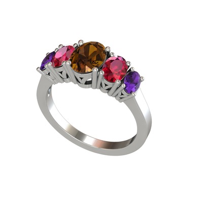 Dumanlı kuvars, rodolit garnet ve ametist 18 ayar beyaz altın yüzük