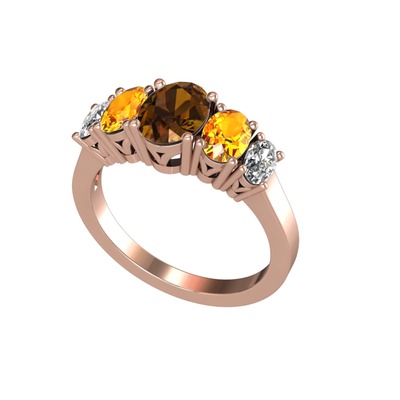 Dumanlı kuvars, sitrin ve beyaz zirkon 8 ayar rose altın yüzük