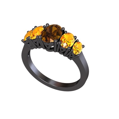 Dumanlı kuvars ve sitrin 925 ayar siyah rodyum kaplama gümüş yüzük