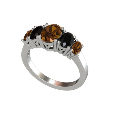 Dumanlı kuvars ve siyah zirkon 18 ayar beyaz altın yüzük