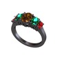 Dumanlı kuvars, yeşil kuvars ve garnet 925 ayar siyah rodyum kaplama gümüş yüzük