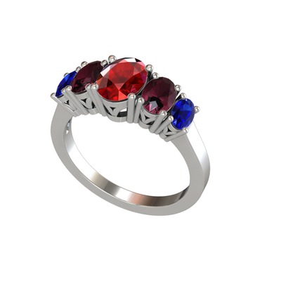 Garnet, kök yakut ve lab safir 14 ayar beyaz altın yüzük