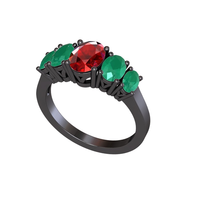 Garnet ve kök zümrüt 925 ayar siyah rodyum kaplama gümüş yüzük