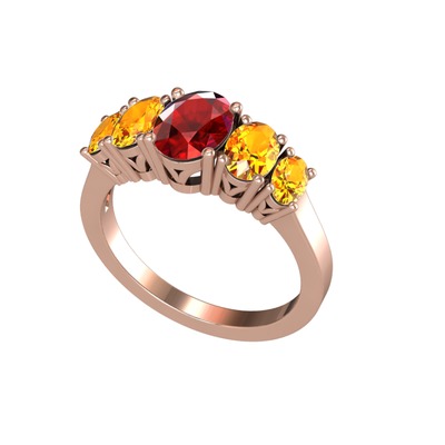 Garnet ve sitrin 14 ayar rose altın yüzük