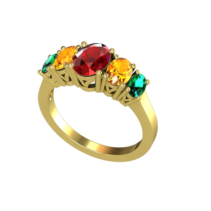 Garnet, sitrin ve yeşil kuvars 18 ayar altın yüzük