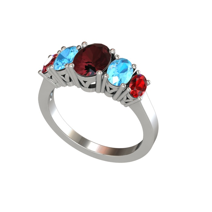 Kök yakut, akuamarin ve garnet 925 ayar gümüş yüzük